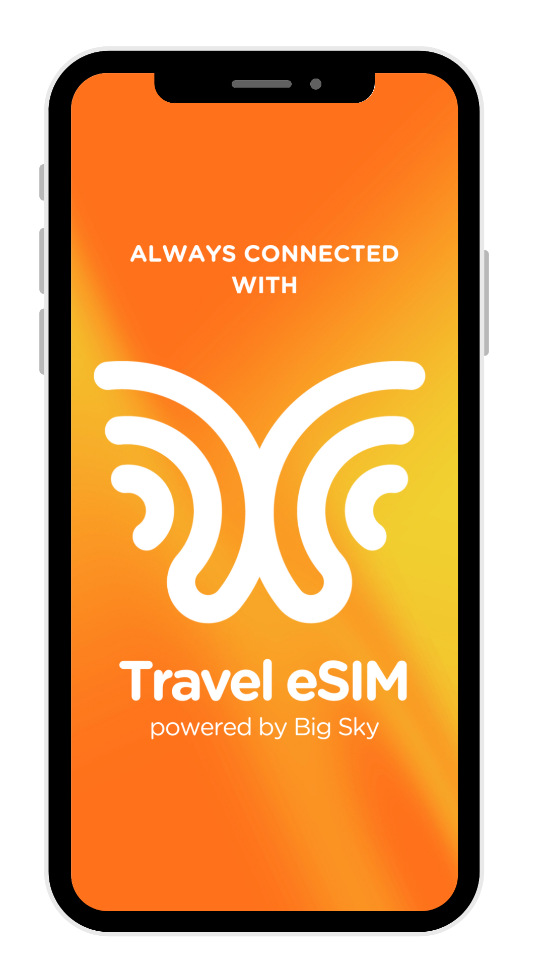 The Big Sky Travel eSIM is a digital SIM card you install by scanning a QR code. It gives you mobile data abroad without needing to insert a physical SIM or carry a WiFi device.